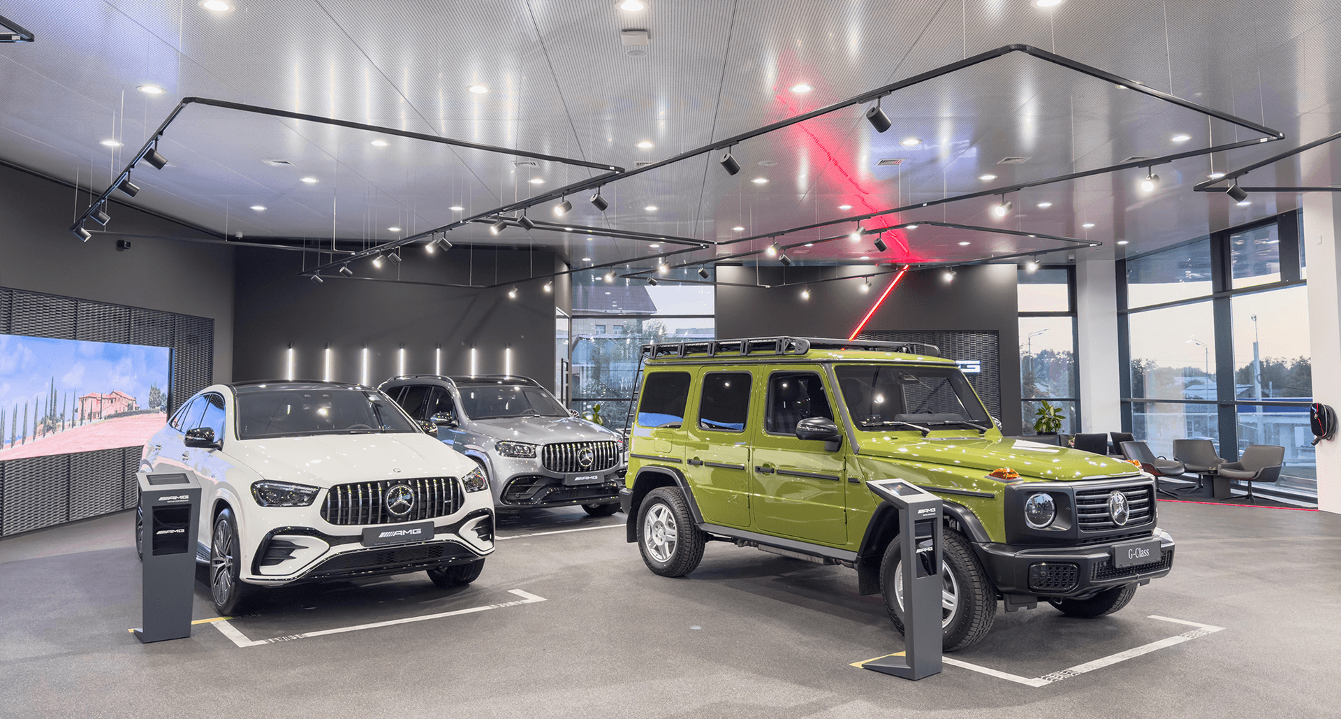 Для достижения поставленных целей наша компания предоставила комплексное решение, основанное на продуктах с высокими показателями энергоэффективности и долговечности. Для помещений с высокими потолками (до 9 метров), таких как сервисный центр и элементы шоурума, были выбраны мощные встраиваемые DL POWER LED 60 D60 4000K. Данные даунлайты обладают светоотдачей до 100 лм/Вт и литым алюминиевым корпусом, что гарантирует долговечность и точное распределение света в премиальном пространстве. Для технических зон и складов были применены линейные пылевлагозащищенные светильники SLICK.PRS ECO LED 60 4000K.