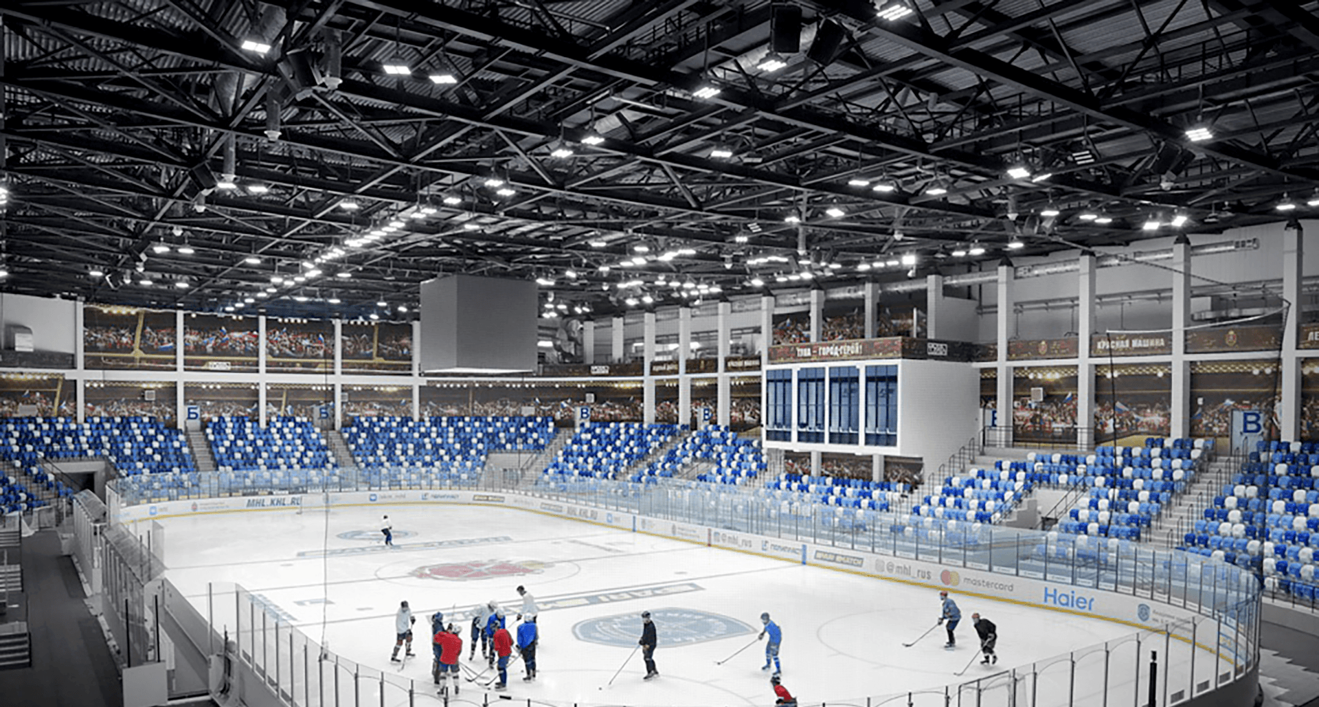 обеспечить качественное освещение ледовой арены с учётом жестких требований к ТВ-трансляции, а также разбиения системы освещения на несколько режимов.