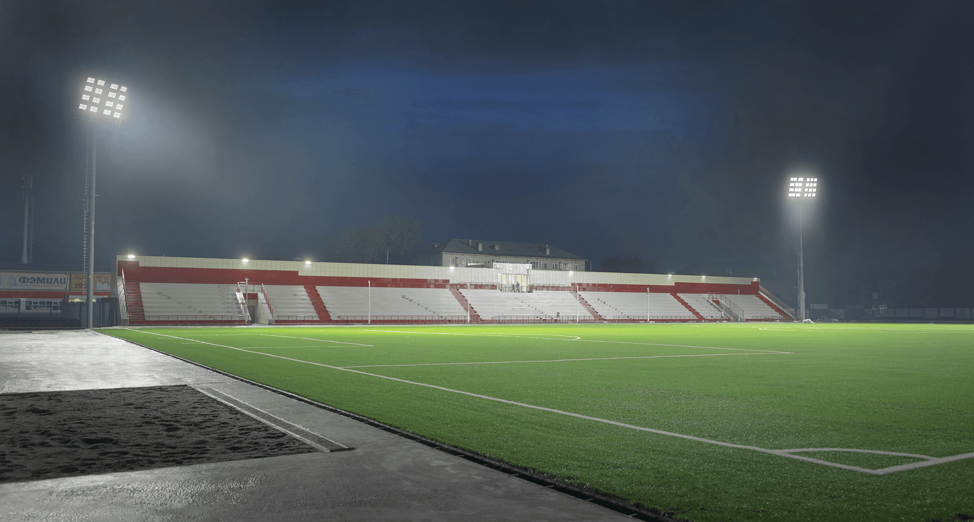 установлены супер-мощные прожекторы серии HB LED 600 и HB LED 600 G2. Эти светильники - отличный выбор для решения задач освещения открытых спортивных площадок, позволяющие максимально осветить поле без дискомфорта для зрителей и спортсменов.Для сложных спортивных объектов мы своими силами осуществляем юстировку светильников. В Куйбышеве специалисты компании провели работы по регулировке прожекторов. Все требования освещенности обеспечены и мы уверены, что освещение на стадионе точно не подведет!