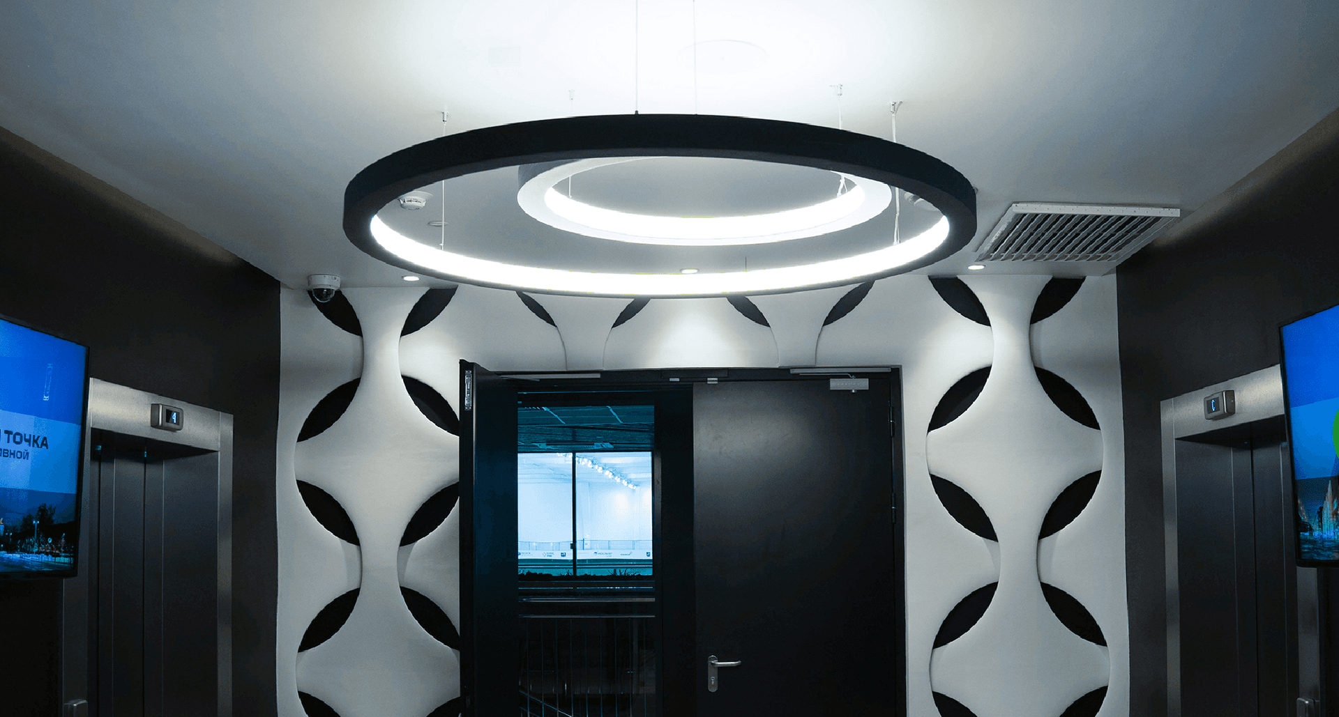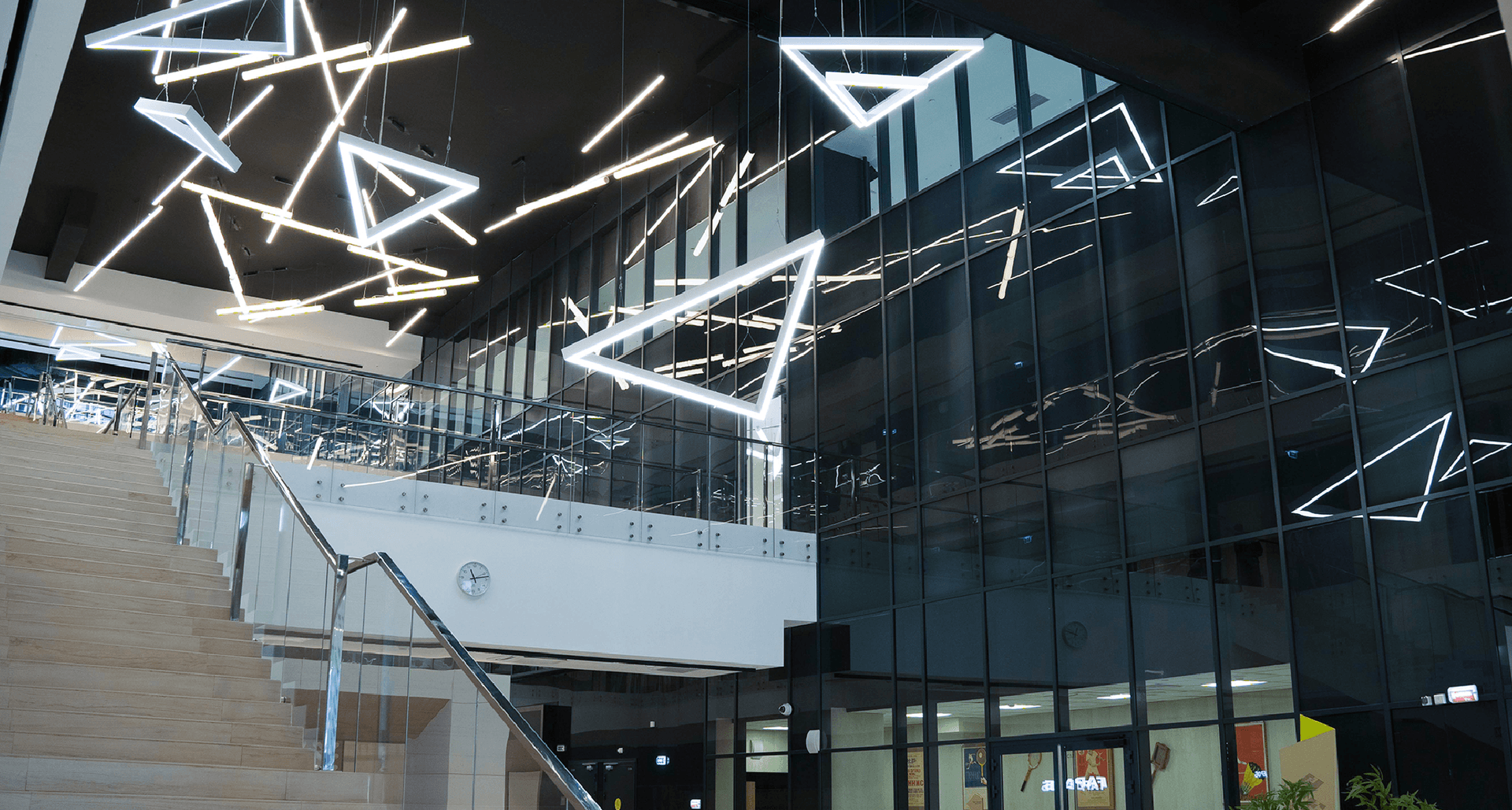 Установить осветительное оборудование в соответствии с концепцией проекта и следуя всем техническим требованиям. Необходимо было оформить многочисленные пролёты и атриумы функциональным и одновременно эстетичным осветительным оборудованием, который станет частью общей концепции.