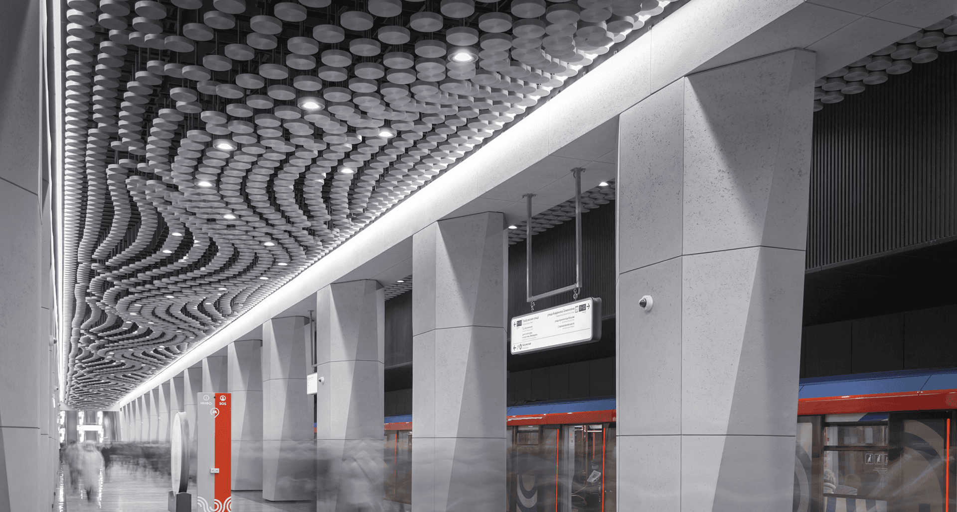 "Космический" потолок станции подчеркивают светильники производства МГК "Световые Технологии". В потолок встроены DL POWER LED. Разработаны специальные модификации на базе линейных светильников. Впервые наши светильники установлены на эскалаторах. Совместно с архитекторами Моспромпроекта был «с нуля» разработан светильник-торшер PALA METRO, который вскоре можно будет встретить и на других открываемых станциях метрополитена.